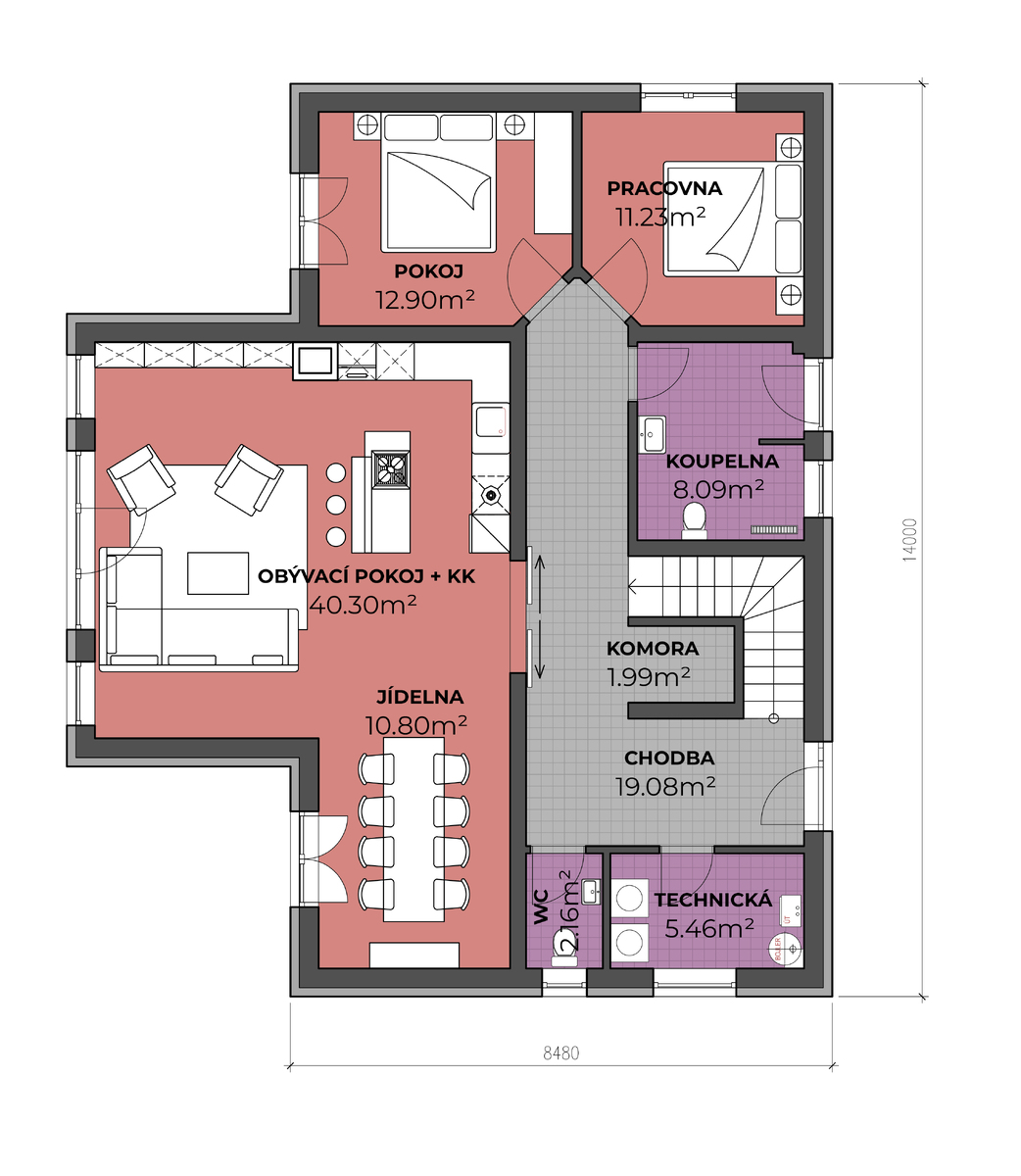 Dispozici domu lze individuálně přizpůsobit vašim potřebám.