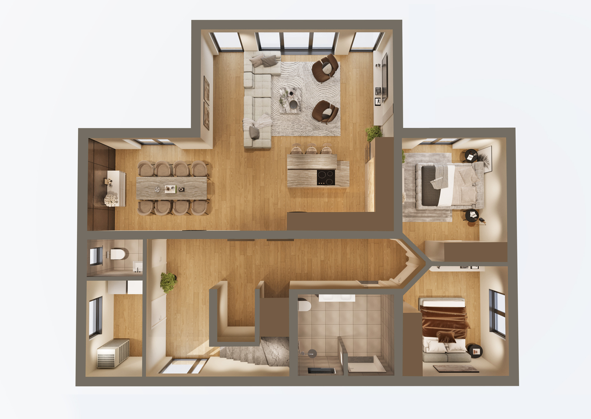 Působí útulně, ale zároveň reprezentativně. Je ideální pro ty, kteří hledají kombinaci estetiky, funkčnosti a velkých prostor.